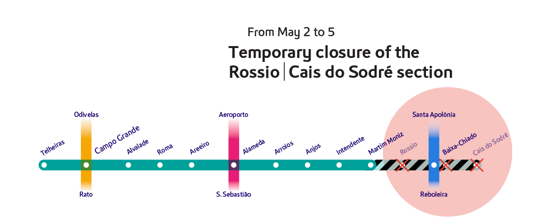 During this period, the following stations will be closed: Rossio, Baixa-Chiado and Cais do Sodré.