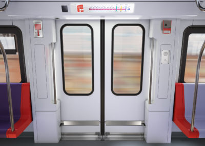 Renderização das portas no interior dos futuros comboios do Metro