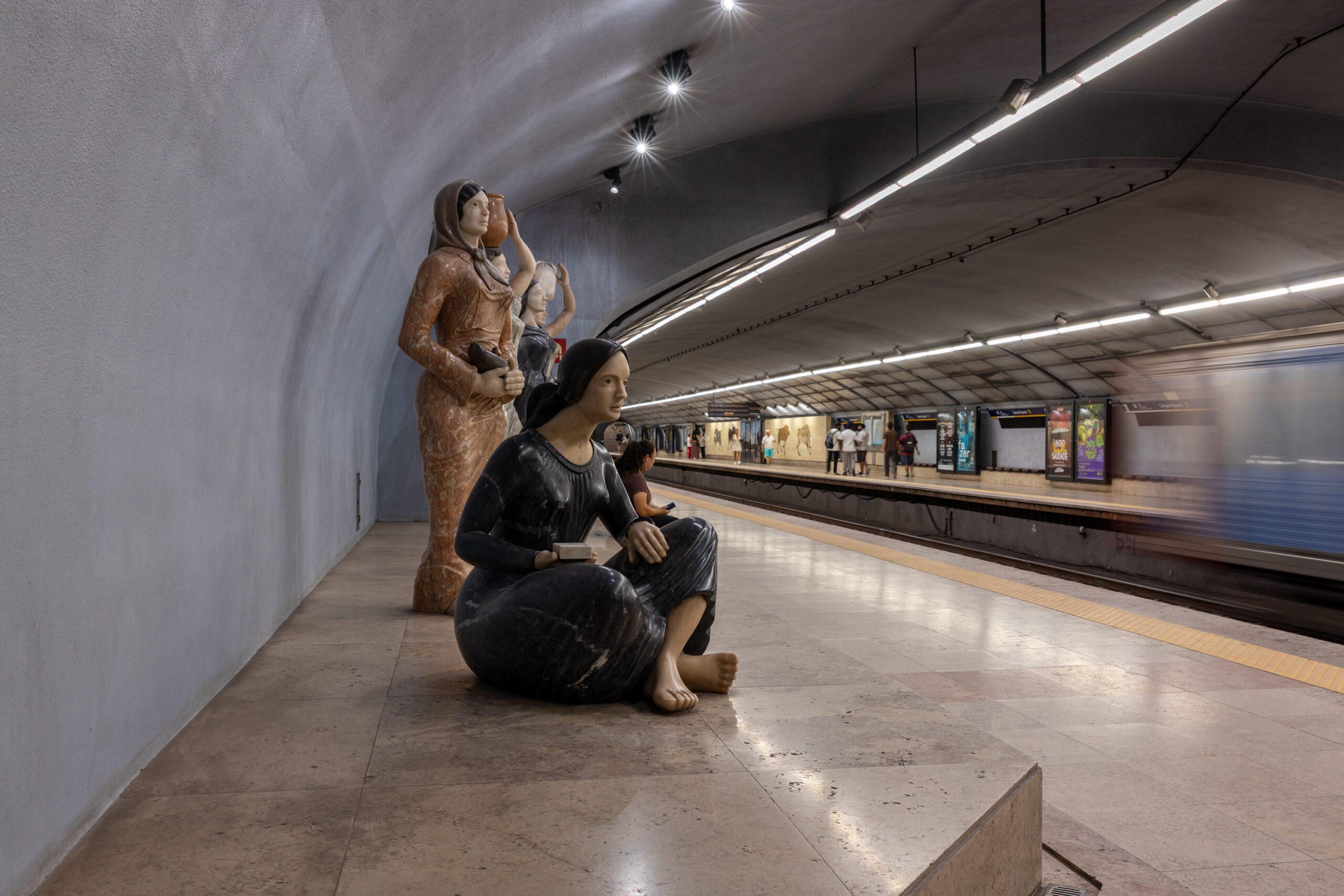 Partindo desta memória, o escultor concebeu as emblemáticas «Mulheres de Lisboa», um conjunto escultórico que homenageia essas figuras típicas e que acompanha diariamente milhares de clientes. Para tal, recorreu a uma extraordinária diversidade de mármores portugueses (lioz de Pêro Pinheiro, azulino de Maceira, encarnado e amarelo de Negrais, rosa de Vila Viçosa, ruivina de Estremoz, brechas de Tavira, negro de Mem Martins, verde de Viana do Alentejo e cinzento de Trigaches), bem como ao azul da Bahia e a pedras semipreciosas como a ágata e o ónix.