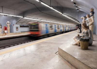 É através da participação continuada de inúmeros arquitetos e artistas plásticos de reconhecido mérito que o Metropolitano de Lisboa afirma o seu compromisso com a cultura, qualifica o espaço público subterrâneo e torna mais apelativa a experiência de viagem. Esta integração entre mobilidade e criação artística contribui para que a rede do Metro de Lisboa seja amplamente reconhecida como o museu mais visitado do país, em funcionamento 365 dias por ano, num horário de 18 horas diárias.