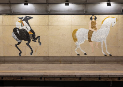 No âmbito da remodelação de 1994, projetada pelo arquiteto Duarte Nuno Simões, o escultor Francisco Simões foi convidado a desenvolver a animação plástica da estação, assumindo uma linha temática inspirada na história do próprio lugar.