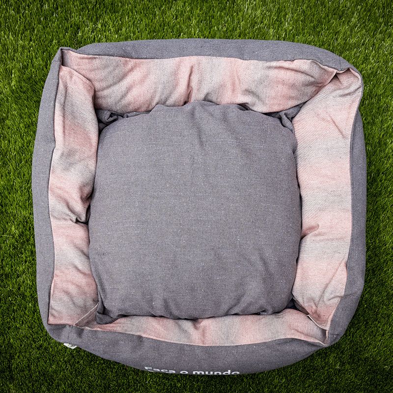 Edição limitada de camas solidárias para animal, feitas a partir de tecidos reciclados do Metropolitano de Lisboa. Esta versão apresenta tons vermelhos, que podem variar ligeiramente.